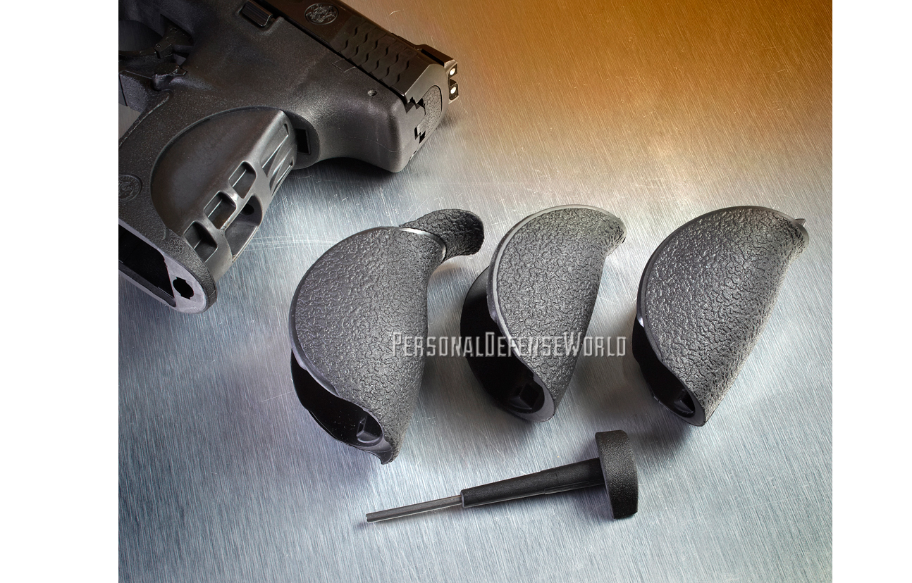 Speaking of the interchangeable palm swells/backstraps, I changed the one that came installed on the gun immediately. The M&P45c is shipped with the medium-sized backstrap installed, as well as a larger and smaller version. I put the small backstrap on the gun.