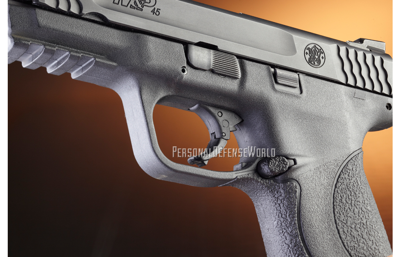 The M&P45c, like its big brother, is a soft-shooting .45 ACP. The trigger got smoother with continued use. Doing some regular dry-fire practice—no ammo in the room, a bullet-stopping wall and my old Pocket Pro timer—I got the time for my first shot down and noticed decreasing movement of the front sight at the click of the trigger.