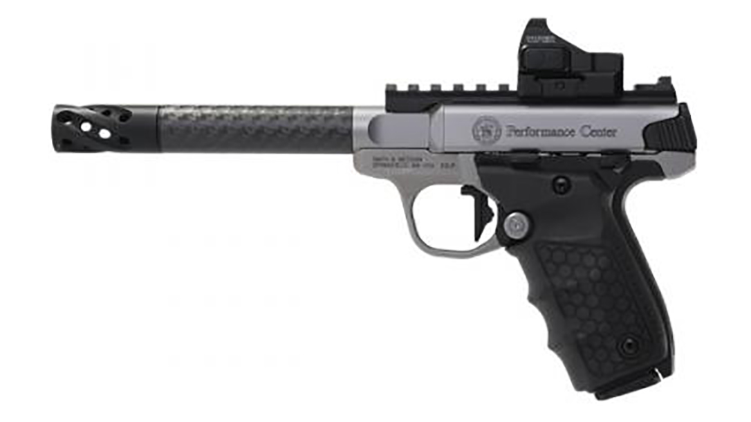The new Performance Center SW22 Victory Target models are available with either a six-inch fluted or six-inch carbon fiber barrel. Additionally, they come with or without a Vortex Viper Red red dot sight.