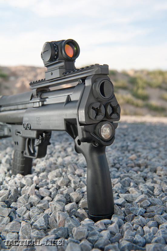 South Lake, Utah, SWAT practitioner and Guns & Weapons correspondent David Bahde had the chance to take the KSG SBS out for a spin in his private shoothouse, running the steel and polymer gun through a rugged series of trials, blasting doors and targets alike. How did Kel-Tec’s handy pump-action bullpup perform? To find out, pick up a copy of the January 2014 issue of Guns & Weapons for Law Enforcement, available on newsstands and digitally October 8, 2013. To subscribe, go to /guns-weapons-for-law-enforcement/.
