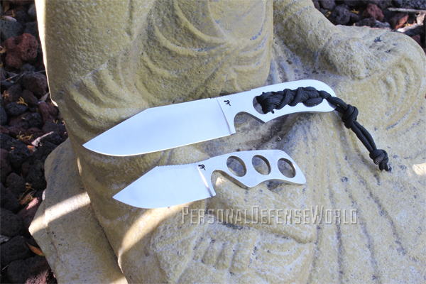 Perrin’s larger knives include a “Compact Street Bowie,” a 2.5-ounce boot-style knife with a 4.375-inch blade. According to Janich, “…It combines all the salient features of the Street Bowie design with the sleek skeletonized construction of [Perrin’s] other mid-tech pieces to yield an amazingly flat, lightweight and concealable knife that offers full-service performance.”