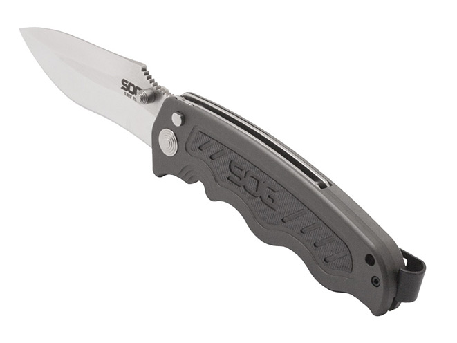 New for 2016, SOG Knives has expanded its Zoom series to include the Zoom S30V, a lightweight, compact folding knife with a 3.6-inch S30V blade and aluminum handles with carbon fiber inserts. Using SOG’s assisted opening technology, the S30V blade opens with the push of your thumb on the thumb stud. With a thin profile and reversible pocket clip, the Zoom S30V is ideal for everyday carry. MSRP is $229.00. See below for a rundown of features and specs.