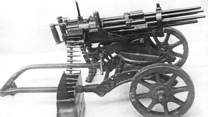 One of the most interesting attempts to produce such weapons for ground use is attributed to designer Slostin, who produced a series of eight-barreled 7.62x54R machine guns by the late 1930s. The barrels were arranged in a rotating cluster, but unlike the well-known Gatling system, Slostin guns were self-powered. Also, there were no sliding bolts in his guns; instead, the barrels moved forward and backward against individual, stationary breeches, being operated by cross-linked gas pistons and chambers. These machine guns achieved firing rates in excess of 6,000 rounds per minute. However, war broke out before they were perfected, and the guns were never adopted.