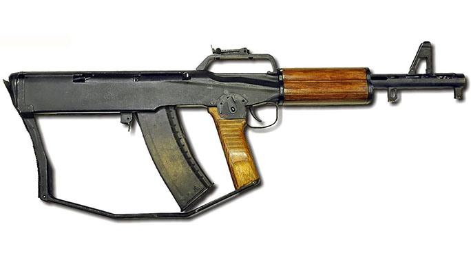 In the 1960s, Korobov worked in several directions. First, he tried to improve hit probability by following the same “shotgun” concept as American SALVO/SPIW systems. To this end, he built the 7.62x39mm TKB-059, a three-barreled, salvo-firing weapon. It was recoil operated, using a single bolt for all three barrels and a triple magazine. Firing three-bullet salvos, the TKB-059 achieved a noticeable increase in hit probability at the cost of increased weight, complexity and felt recoil. Later on, Korobov and his colleague, Nikolay Afanasiev, worked on a series of 7.62x39mm assault rifles using newly developed polymers for receivers and furniture. Throughout the 1960s they produced several polymer-stocked weapons, mostly in bullpup configurations.