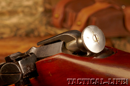 In use, the Mosin PU sniper rifle’s scope was extremely effective in the right hands, but quite different from what we’re used to today. The reticle’s vertical center-post requires more concentration to keep the tip placed precisely on target for best accuracy through a long and heavy trigger pull than does a modern crosshair-style mounted on a rifle with a much better trigger. For accuracy, I shot a sample 1943 Izhevsk PU from Mitchell’s Mausers with a 1944 Kazan/KOMZ optic, which matched the secondary serial stamped on the barrel shank, at 100 yards. In a genuine PU scope, the entire reticle moves visibly inside the eyepiece as the drums are turned, and there was a notable difference in point of impact between the three loads tested. The trigger pull itself was a consistent 6 pounds, a half-pound lighter than a standard 1943 Izhevsk infantry rifle I had on hand. Once dialed in, the sniper rifle held a best 100-yard three-shot group of 1.31 inches with the Hornady 174-grain Vintage Match loads. A genuine Mosin PU is an important historical artifact in the world of classic military weaponry, and a study in itself. For more on Mitchell’s Mausers Mosin-Nagant, visit mauser.org or call 800-274-4124.