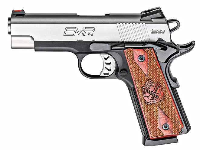 Recognizing the value of a small 1911 pistol chambered in 9mm, Springfield Armory built the EMP in 2007. The chamber system was shortened and the gun’s remaining dimensions balanced to fit. Standard EMP actions are 0.125 inches shorter than typical 1911s. On the original EMP, an aluminum frame kept the gun light while maintaining a 9+1 capacity. Low-profile, tritium combat sights are used along with a match-grade, bull barrel. The new EMP 4” Lightweight Champion starts there and adds a few improvements with some differences.