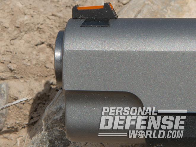 The frame remains aluminum and includes frontstrap dimpling. It’s not overly aggressive, but it does ensure a solid hold. The grip length has also been increased, allowing for a new 10-round magazine. These mags are stainless steel with a steel follower and coated in black satin. The grip is cut moderately high and holds an extended grip safety. Slightly rounding the bottom of the checkered mainspring housing also lessens the chance of printing during concealment, while flaring the mag well assists with magazine changes.