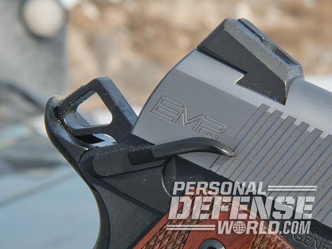 The gun’s ambidextrous safety is slim to enhance concealed carry. Grooves on the slide stop and magazine release keep things working in adverse conditions. An aluminum trigger offers a crisp reset, limited take-up and no overtravel. All in all, sharp edges are kept to a minimum on this EMP.