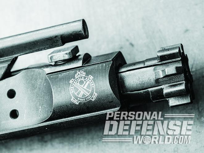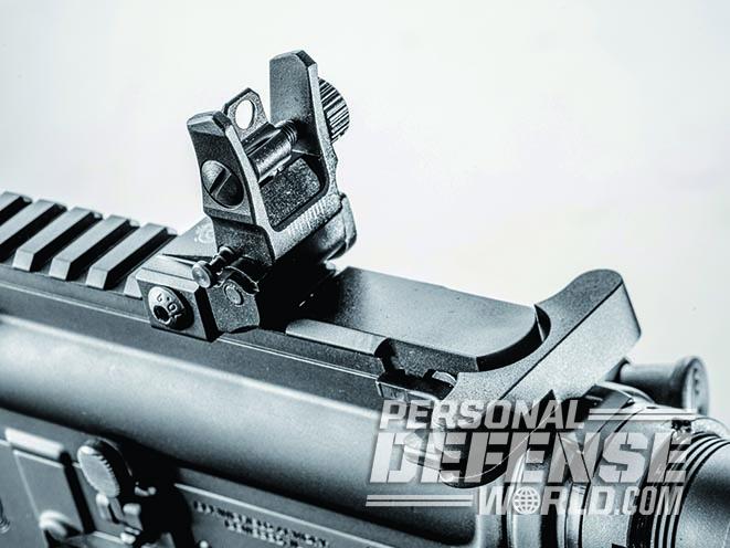 The Saint is also equipped with a Springfield Armory low-profile, flip-up rear sight that offers dual apertures and 0.5-MOA windage adjustments via a small knob. Internally, the M16 bolt carrier group is machined from Carpenter 158 steel, and the bolt is shot peened and magnetic-particle (MP) inspected.