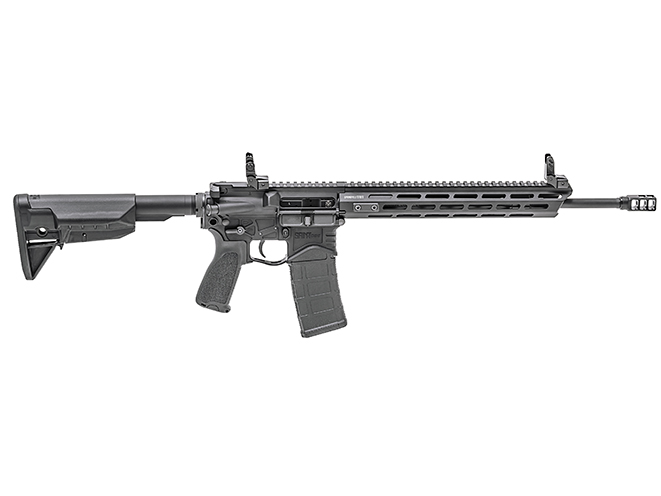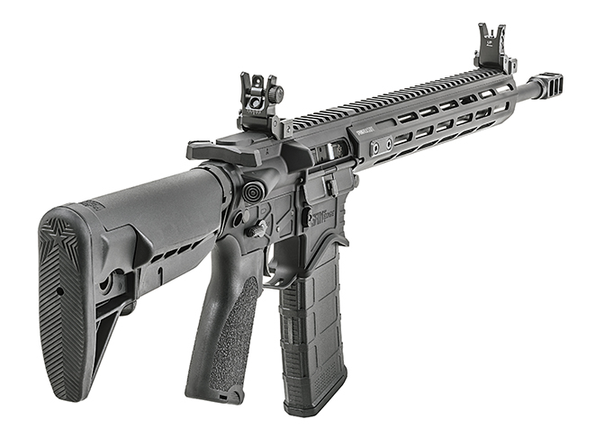 Meanwhile, this rifle also comes with updated furniture, including a Bravo Mod 3 pistol grip; six-position Bravo Mod 0 SopMod butt stock; and Mil-Spec hard coat anodized aluminum receiver extension.