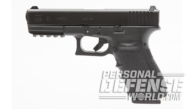 Oddly enough, in 2007 Glock began producing its Short Frame (SF) models for its large pistols in 10mm and .45 ACP. The SF models reduced the circumference of the grip at the backstrap and included other minor changes. This resulted in a pistol that handled and felt better than the original Glock 21 while still keeping its own 13-round capacity.