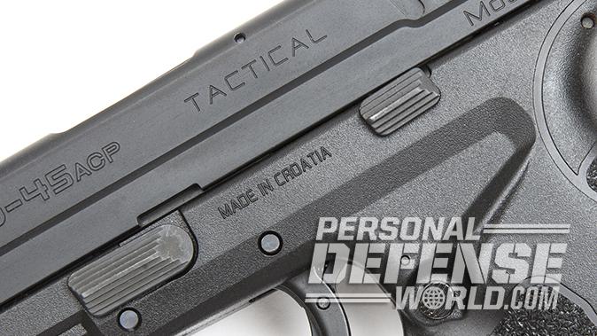 Other niceties include slimmer controls like the takedown lever, a low-profile rear sight, an accessory rail, an ambidextrous magazine release and more aggressive slide serrations at both the front and rear. These are updates for the entire Mod.2 line of pistols. The main difference with the .45 ACP Tactical model is the inclusion of a 5-inch barrel rather than the 4-inch version that comes on the Service model.