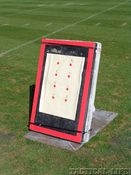 The course includes plenty of live-fire exercises and drills that force each shooter to engage targets within the Cotton Bowl. Students are required to demonstrate their ability to accurately engage threats (MGM bullet traps set at various places within the stadium) using their own rifles and duty ammo. Sometimes the drills have the students respond as a pre-positioned team or as part of a response to an event. The drills include deployment from an armored vehicle and helicopter as well as movement from the ground floor to different levels of the stadium to make immediate and accurate shots while receiving intel from communications during the run.