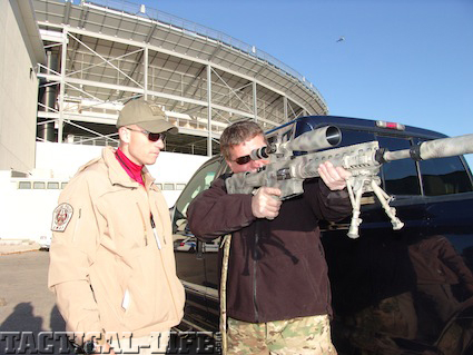 The four-day course begins by ensuring that both the weapons and shooters are capable of delivering precision shots at any range. The students also visit local venues to learn what to look for and seek out when establishing an FFP. The class quickly realizes the complexity and difficulty in operating in large arenas like Cowboys Stadium and why physical fitness for a sniper is essential. Classroom time is provided to teach the theory, equipment and practical applications of delivering accurate, high-angle fire.