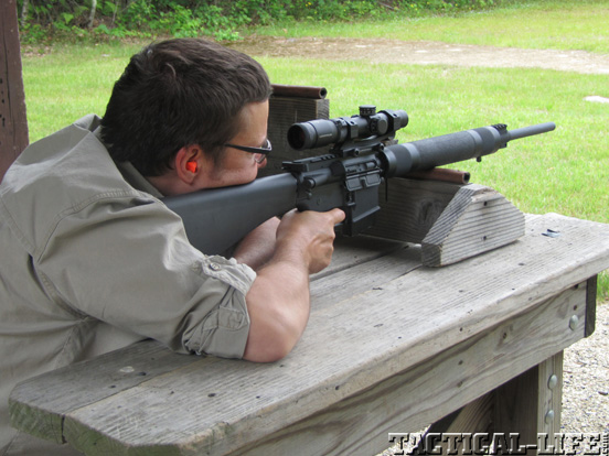 At the range, with a benchrest the Stag Arms Model 7 was easy to shoot. The two-stage trigger broke at 5 pounds and the VX-R scope made it simple to get on target fast. The Stag Arms Model 7 and Leupold scope are a good combination. Recoil was nil and allowed me to concentrate on the target. While shooting from a standing position, like I do when I shoot at jumped bucks in the hardwoods, I came to appreciate the round Hogue handguard and how fast the rifle could get into action.