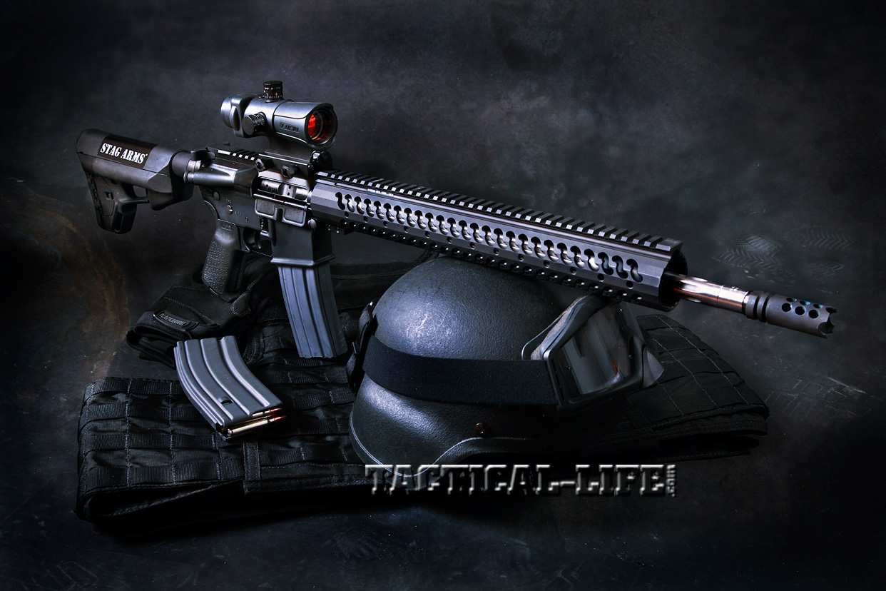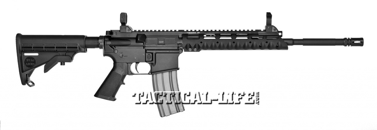 Stag Arms’ personal-defense carbines start with the Model 1 and Model 1L, which are entry-level civilian versions of the military M4, but with 16-inch barrels. The Models 1 and 1L have removable carry handles, open sights, polymer handguards like the M4, mil-spec triggers and six-position adjustable stocks.
