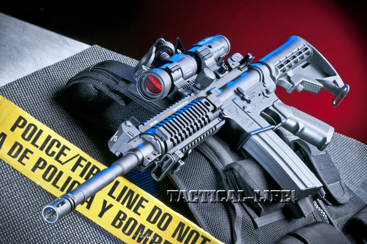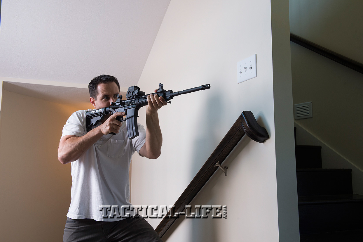 You may think that left-handed rifles only have appeal to southpaw shooters, and they do, but LE agencies have found ARs that spew empties to the left valuable. Entry teams, by their very nature, are tucked close together, and when members positioned on the left flank use left-handed ARs and the shooting starts, hot brass won’t pelt or distract the other members. Team members positioned on the right use right-handed ARs. This strategy ensures empties fall away from team members, allowing them to focus on targets. Stag Arms produces left-handed versions of all its rifles. Model names ending with the letter “L” indicate a left-handed model. Other than a mirror image of a right-handed AR, left- handed ARs perform the same. Most Stag Arms rifles are chambered in 5.56mm NATO and accept .223 Remington cartridges. And they stay true to the “black rifle” character, as all of the rifles have a Type 3 hardcoat anodized finish.