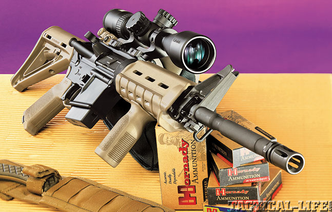 At the range, I mounted a Nikon P-223 3-9X scope on the Colt LE6920CMP-FDE. Since the Nikon scope features a BDC reticle, I used the company’s Spot-On web-based calculator to dial in the Hornady Z-MAX loads. Adjusting the scope to 6X put the aiming circles close to 100-yard increments with my 100-yard zero. Steel targets set at 200, 400 and 600 yards provided some long-range fun, while I held “Kentucky windage” on the farthest target to allow for variable winds.