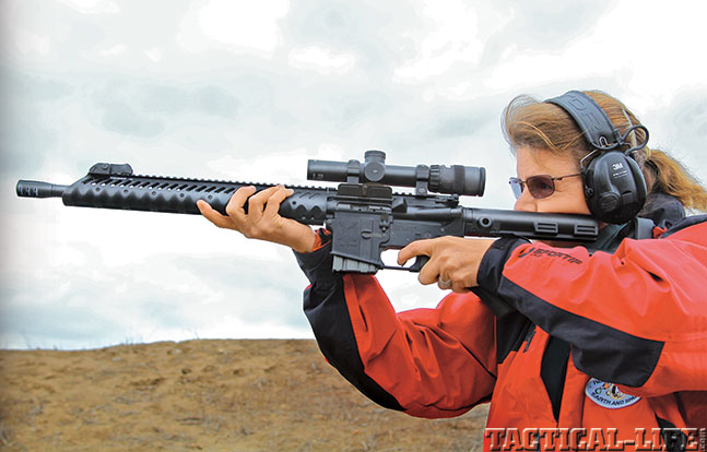 The accuracy testing complete, I mounted a Lucid HD7 red-dot sight and a Lucid 3X magnifier. The LE6940CA’s monolithic top rail is ideal for this setup, since it allowed me to mount the optics farther forward than what would’ve been possible on a standard flattop AR.