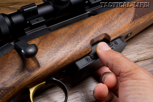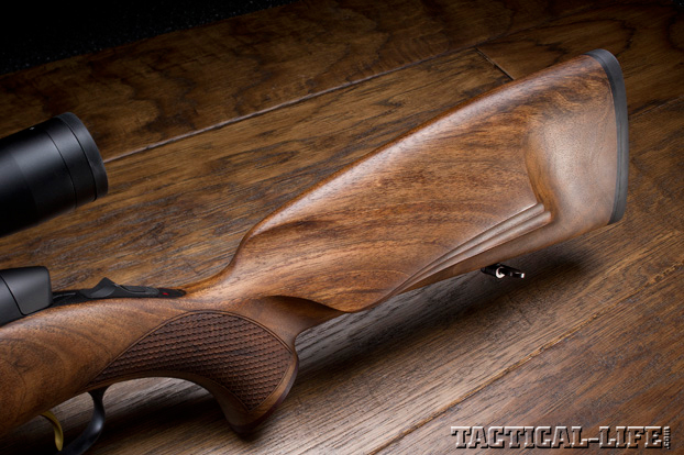 The SM 12 sent for T&E was reportedly the first one available to the press; it was chambered in .308 Win., which is one of 13 calibers being offered this first year. The initial impression one gets on seeing the gun for the first time is that it is styled for the European market. I say that because the stock has a very subtle but nonetheless drooping buttstock instead of a straight comb or a Monte Carlo, a Bavarian-style cheekpiece, and the sliver-like forend they seem to prefer over there. Instead of checkering or stippling, the grip and forend panels are done in a fish-scale pattern, and the rubber buttpad has about as much give as an I-beam. A rosewood forend tip with schnabel and rubbed oil finish to the walnut completes the stock cosmetics.
