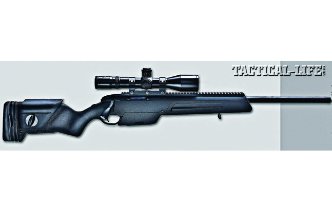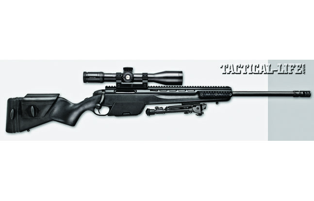 The SSG 08 is about as far from that first SSG as the space shuttle is from a World War II biplane. Designed with the input of police and military snipers to be the “ultimate Steyr,” a gun that can deliver the goods in the modern world of international terrorism and drug interdiction, the SSG 08 features an aluminum alloy stock with a side-folding, fully adjustable butt and cheekpiece, forward Mil-Spec rails for mounting lights, lasers and other accessories, and like the SSG 04, is available in 7.62mm NATO and .300 Winchester Magnum.