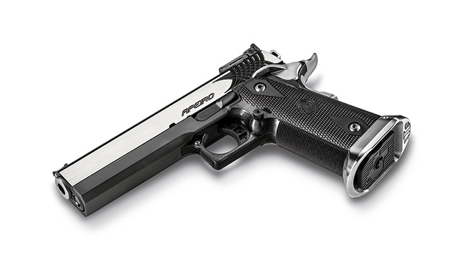 When you are running higher-pressure ammo but still need a fast gun, consider the Match Master. Although similar to the Steel Master, this pistol is designed to run hotter ammunition. It can be had in either 9mm or .38 Super and comes with a T2 compensator. The Match Master is fitted with an oversized magazine well for faster reloads and the mounted 6-MOA C-More sight ensures you put rounds rapidly on target. Although it is built for speed, this is a gun that also looks good with stainless accents on a polished blue frame. Additionally, the slide has the elegant and functional Sabre-Tooth serrations.