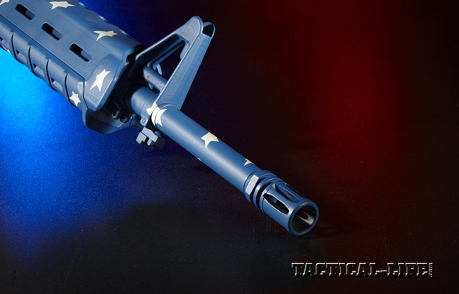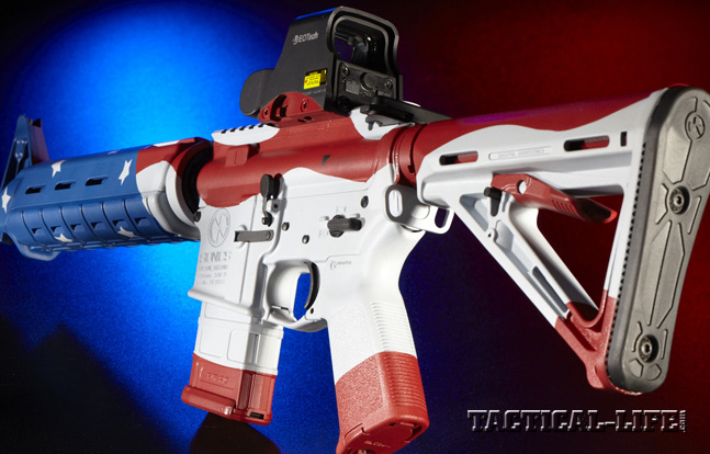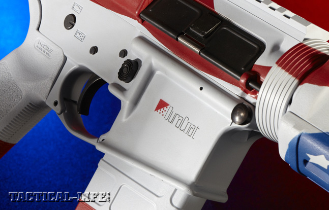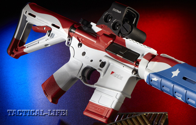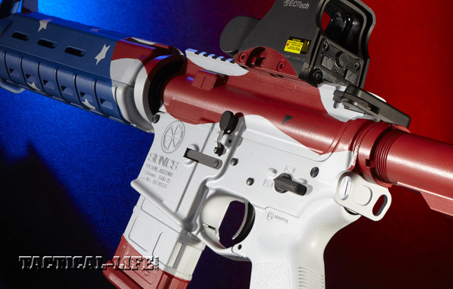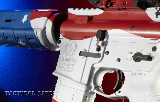 Teaming up with SIONICS (an acronym for Studies In the Operational Negation of Insurgents and Counter-Subversion, and at one time the name of a 1960s-era suppressor company) Weapon Systems and DuraCoat’s owner, Steve Lauer, we envisioned a unique AR-platform rifle with a patriotic paint job. The icing on the cake was an EOTech optic. To make the project even more interesting, it was decided to offer the rifle up for auction to raise money to donate to the MARSOC Foundation.