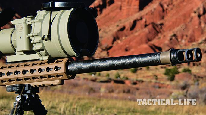 I knew I wanted a Proof Research carbon-fiber-wrapped barrel right off the bat, as I’ve used these barrels in various chamberings with stellar results. On top of being very precise, they can shave 2 pounds or more from your rifle’s overall weight. In fact, I’ve used Proof Research barrels to produce numerous 0.3-inch groups at 100 yards—that’s about as accurate as my capabilities allow. And given that I wanted to use this precision rifle for a number of roles, I settled on a 24-inch, carbon-fiber-wrapped barrel for the project.