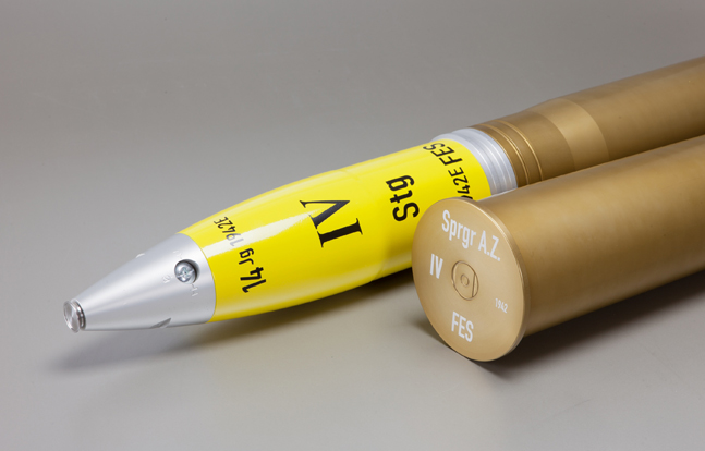 The Technoframes FLAK 88mm replica offers collectors a chance to own their own version of this famous artillery shell. Part of the company’s line of replica cartridges, the FLAK 88mm is offered in two versions—the 8.8cm Flak 36 HE (with High-Explosive markings) and the 8.8cm KwK 36 AP (with Armor Piercing markings) used on the PzKw VI Ausf. E tank (also known as the Tiger I).