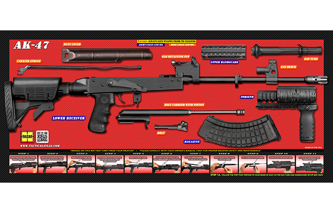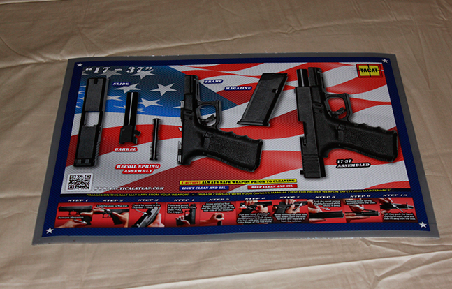 “We understand that you need a clean, safe surface for your firearm during disassembly, so we’ve created a product that provides you with a non-slick surface that’s durable enough to handle even the harshest cleaners and toughest environments,” Tactical Atlas says on its website. “How durable, you might ask? Each TACAT system, made right here in the USA, is constructed of two layers of military grade vinyl!”
