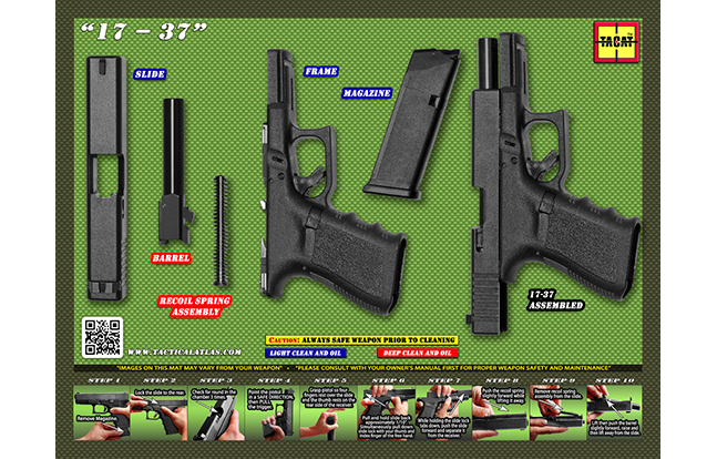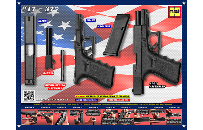 The mats show gun owners how to quickly and properly field strip (disassemble), clean and maintain their firearm.