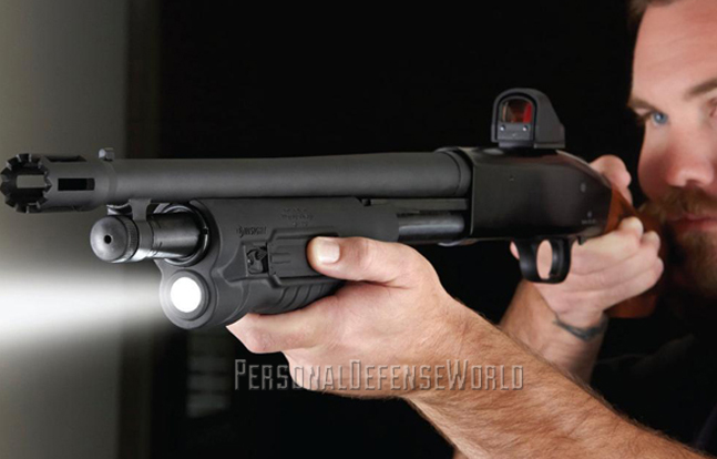 The general public’s first visual of a laser-equipped pistol was the AMT Longslide wielded by Arnold Schwarzenegger in The Terminator—after that, everybody wanted one. But back in the 1980s laser sights were almost as big as the guns they fit. Today, a laser sight mounts inside a standard-contoured pistol grip or slides, under the Picatinny rail, on any number of properly accessorized revolvers, semi-autos, rifles and shotguns. As a home-defense option, a tactical laser is an affordable accessory that can make the difference between an accurate, lifesaving defensive shot and a clean miss.