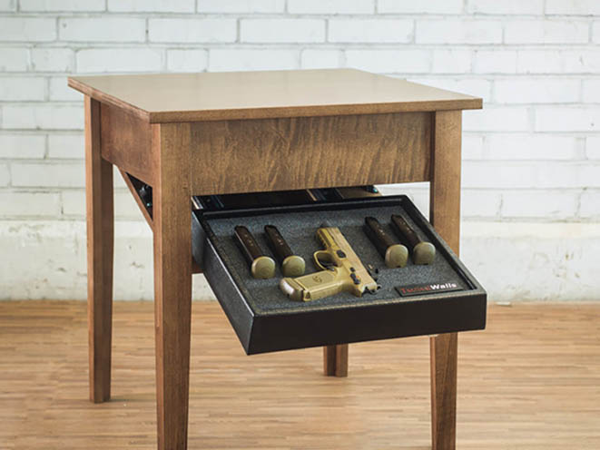 Keep your home defense firearms safety locked away and within arm’s reach in plain sight thanks to TacticalWalls’ new Coffee Table, End Table and Night Stand. These three products mark TacticalWalls’ first stand-alone locking units. Each is made from solid maple and built from start to finish in the TacticalWalls facility located in Shenandoah, Virginia.