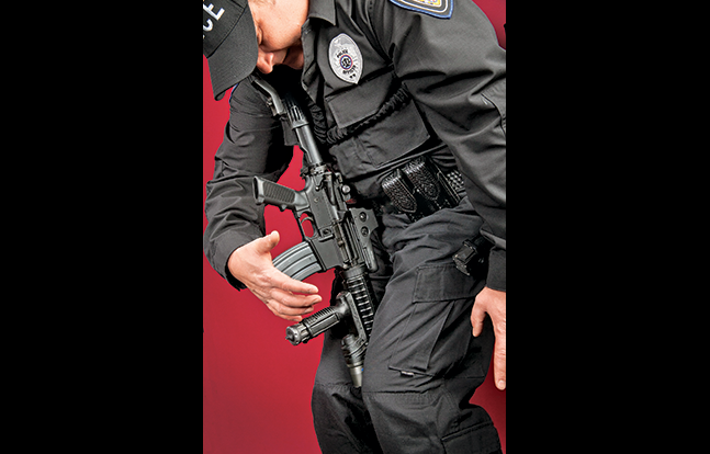Officers need to be familiar with the most effective methods of returning fire from every conceivable position: down on either side at all angles, prone or supine, with one or both hands. Lower-body injuries may eliminate the option of tactical movement to cover. Dropped to your butt or down to both knees, a hail of well-directed bullets from your own weapon may be your only “shield” against incoming fire.