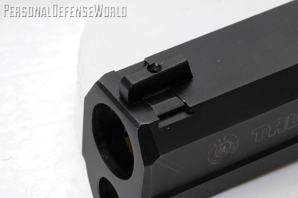 Both the PT 809 C’s single- and double-action trigger pulls are a little on the heavy side, with my Chatillon trigger-pull gauge showing the SA pull at 7.5 pounds and the DA pull at 12 pounds, which is right within the factory’s specifications. And, of course, for defensive use, too light a trigger is reckless. Later, I discovered the reason for the familiarity I felt with the PT 809 C: It is derived from the successful Taurus OSS pistol, but adds an external (and spurred) hammer. Interestingly, the PT 809 C features an unusual DA/SA trigger system, offering the option of being able to use the thumb safety, which is also a decocker, to lower the cocked hammer. The Taurus manual states that this system “automatically goes to a double-action condition when the trigger is released and a cartridge doesn’t fire or the chamber is empty,” which “either allows you to fire again by pulling the trigger double-action or alerts you to the lack of a chambered round.”