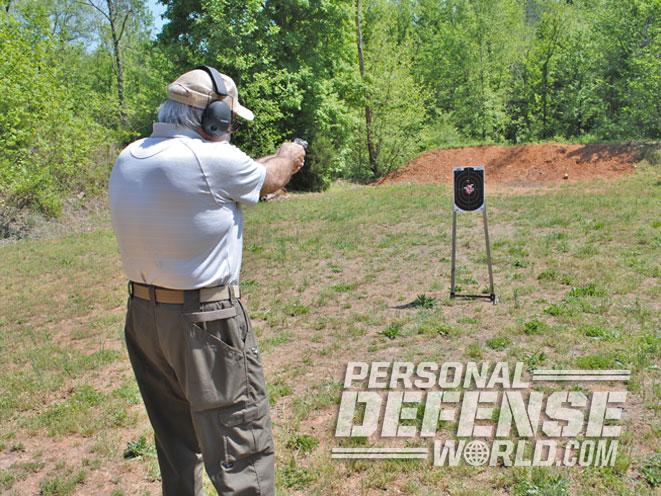 To see how the M380 would perform in its true role in life, I ran it through a series of off-hand drills at 5 and 7 yards. Once again the heavy DAO trigger required nursing along, especially at the farther distance, but by the time I was done the center of the target had many holes in just the right places.