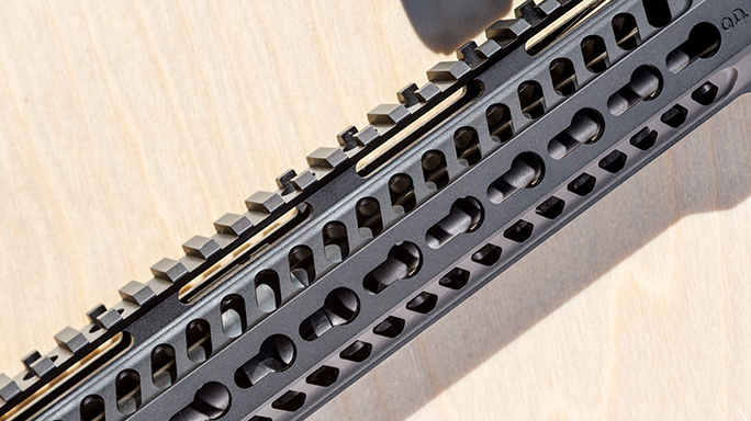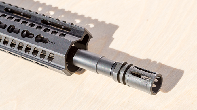 The barrel, chambered for 5.56 NATO, is a 1:7 twist. It is built using Chrome Moly Vanadium (CMV). According to the specifications sheet, the barrel has an operational life of 10,000 rounds.