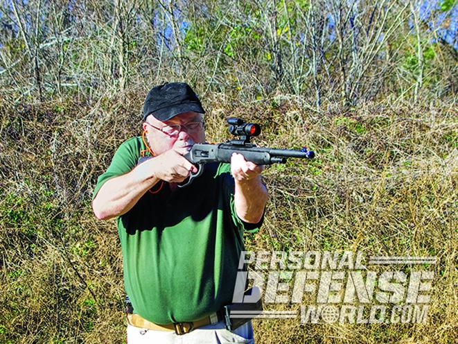 I fired the Ridge Runner from standing, sitting and kneeling positions for about 75 rounds, and follow-up shots were controlled, if a tad slow, from all positions. I shot a few rounds into 2x4s, front and sideways, with through-and-through penetration. Adding two sheets of drywall would have negligible effect on the bullet, so knowing what is downrange will be important.