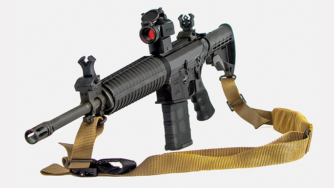 Another nice touch, Windham Weaponry also gave the SRC-308 three integral quick-detachment (QD) sling swivel connection points/sockets. Two are located on both sides of the lower receiver, near the buffer tube/receiver extension. The third QD sling swivel is located on the bottom of the railed gas block, on the rear leg behind the bayonet lug. QD points make it easy to attach and detach a sling in an emergency. (Especially if you use one of Blue Force Gear’s Rapid Emergency Detachment swivels.) Windham Weaponry ships the SRC-308 with a 20-round Magpul PMAG and a basic sling—all in a padded, hard polymer case.
