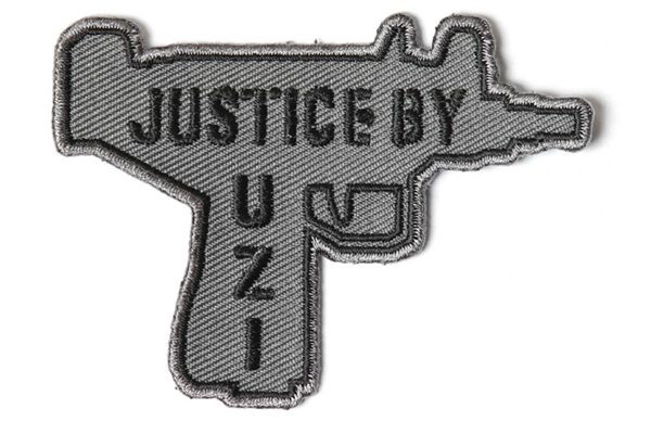• “Justice by Uzi” – The “Justice by Uzi” patch doesn’t express the Second Amendment message directly, but it sure does indirectly. You can let people know how you truly feel about firearms with this plastic-backed patch with sharp, die-cut borders.