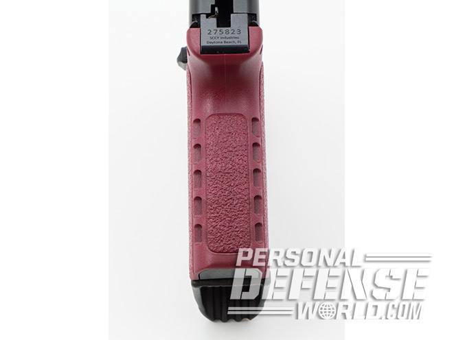 SCCY builds the CPX-2 with a polymer frame. The rear of the frame has what SCCY calls a “Re-Coil Cushion.” This section of the frame has oblong cuts into the polymer that presumably allow the rearmost portion of the grip to collapse and absorb rearward force under recoil, somewhat like a crush zone on today’s modern automobiles.