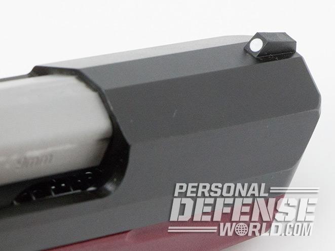 As it ships, the CPX-2 comes with three-dot sights. The sights are large enough to see easily. If you are interested in attaching a laser to your CPX-2, the ArmaLaser TR10 pairs nicely with the gun for less than $120 retail. The TR10 is a red or green aiming laser that attaches to the triggerguard of the CPX-2. It has a pair of gold-plated contacts that activate the laser when the gun is grasped, eliminating the need for a mechanical switch. Windage and elevation adjustments can be easily made, and the ArmaLaser TR10 unit has both a pulsating mode and a master switch to prevent the unit from turning on when so desired.