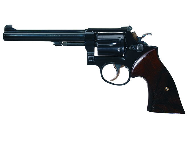 In his book “Burning Powder,” McGivern revealed his favorite revolver: “The double-action .38 S&W Special Target revolver, with a 6-inch barrel, having a gold bead front sight, is the best all-around gun to be had for this work. The McGivern gold bead front sight is…standard equipment on all my revolvers.” He did not use ergonomic target-type grips but fitted his revolvers with factory checkered walnut grips.