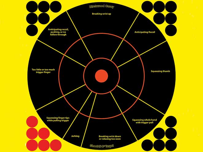 Practice time on the range is great, but if you don’t know why you’re missing, then frustration quickly builds. The Birchwood Casey Shoot-N-C Handgun Trainer target is the answer to that problem. This target provides feedback based on different quadrants of the target to help you understand why you aren’t hitting the center. When the bullet strikes the target, you’ll be able to diagnose shooting problems based on the point of impact. Shooting too high? This target diagnoses that as breaking the wrist up. If you’re anticipating recoil or using too much of the trigger finger (both common problems), you’ll be able to identify those problems, too. Each five pack of targets comes with 90 “repair pasters” that cover existing holes in the target for maximum life. These targets are some of the least expensive and simplest ways to improve your rimfire handgun skills. A set of five targets has an MSRP of $13.