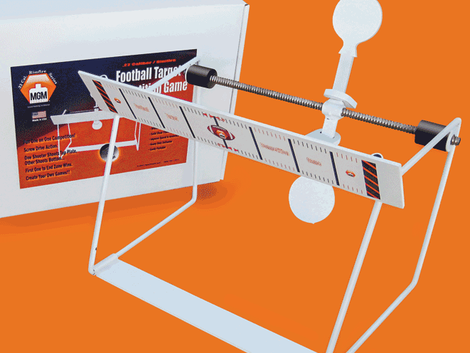 This is a great way to have fun while improving your shooting. The MGM .22 Football Target, made in the U.S., features a football “field” and a hardened round steel target above and below. Strike the top target to move toward one end zone, the bottom target to move toward the other, and the first person to score a touchdown wins! You can also handicap for new or young shooters by starting the target closer to one end zone or the other. As steel rimfire targets go, this is one of the most challenging and exciting new products on the market. It adds a bit of friendly competition to your shooting session while also building important precision shooting skills. This 18-by-17-by-11-inch target comes with a lightweight stand. It’s easy to move and requires no setup. Its MSRP is $129.
