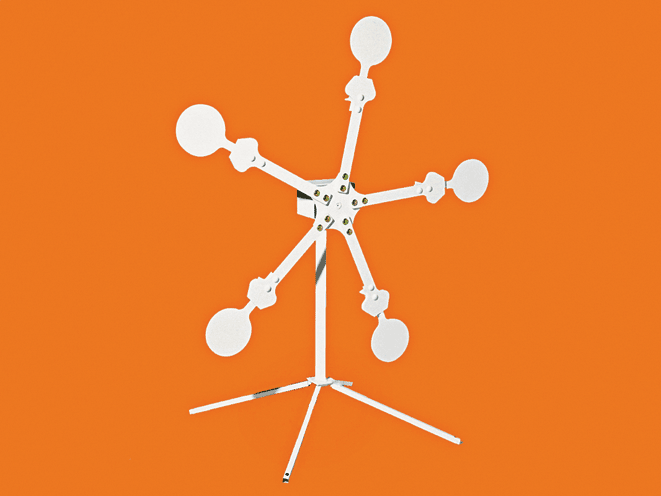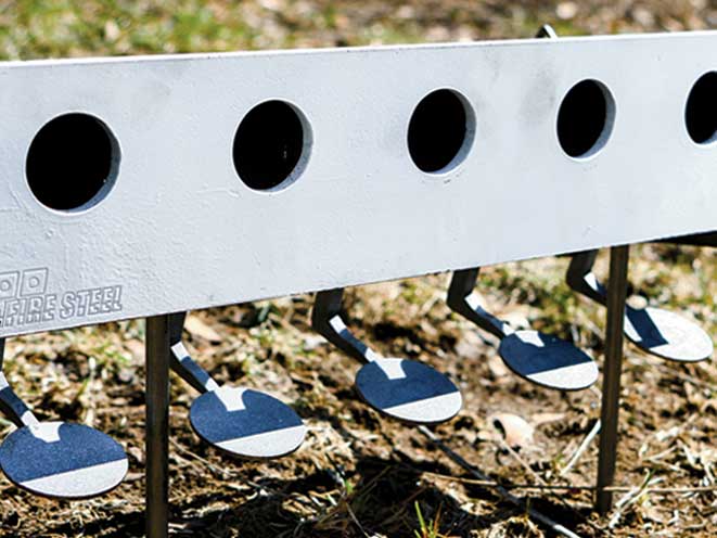 The Whirly-Gig spinning target offers a rimfire challenge that’s reminiscent of the old carnival games of years past. The five-pointed star design is made of hardened AR400 steel, and the heavy-duty, laser-cut plates can stand up to plenty of rimfire rounds. The AR400 arms spin when a target is struck, and each time a plate is hit it falls from the target arm. These plates are easy to reinstall, and you can spend hours practicing with this unit. There are very few targets that help shooters engage moving targets, but this is one of them! Spending some time popping plates will greatly help your shooting skills. The American-made Whirly-Gig is well-built and installation is quick and easy. If you’re a serious shooter, this target needs to be on your range. Its MSRP is $679.
