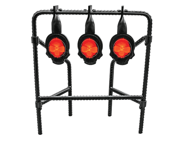 Do-All Outdoors offers a wide variety of affordably priced Bonehead spinning targets that are built on lightweight but durable rebar frames and are easy to transport and set up. Do-All has a variety of different Bonehead options, all of which feature a skull theme. For rimfire shooting, the options include the Two Way Spinner, which offers an inner and outer ring of skull-shaped steel that move independently of one another (try to keep one target moving in the opposite direction as the other spinner!), and the Bonehead Triple Spinner, which has three hanging skull targets with easy-to-see orange center stickers. Both targets are affordable and come already assembled so all that you have to do is head to the field and position the targets where you want to fire. Both the Two Way Spinner and Triple Spinner are rated for soft lead bullets. The MSRPs for the Two Way Spinner and Triple Spinner are $23 and $40, respectively.
