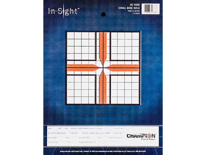 For those who want to wring out the most precision possible from their small-bore rimfire pistol or rifle, Champion offers its In-Sight series of targets. The 50-yard Small Bore Rifle target (shown) in particular is ideally suited for a fun day on the range of seeing how accurately you can place all your shots on paper. Measuring 8.5 by 11 inches, the target is sold in handy packs of 12 and provides the meticulous shooter everything that they need. The 100-yard Small Bore Rifle target measures 14 by 18 inches, the same size as the 100-yard Rifle Sight-In target. Finally, there is the 25-yard Pistol Slow Fire, which measures 11 by 16 inches. These targets feature markings along a crosshair pattern of high-visibility orange bars with black borderlines. The result is an easy-to-use target that helps determine the inherent accuracy of you and your trusty new rimfire! And, the 12 packs for each of these targets is reasonably priced at under $5.