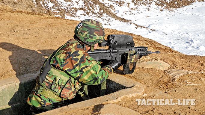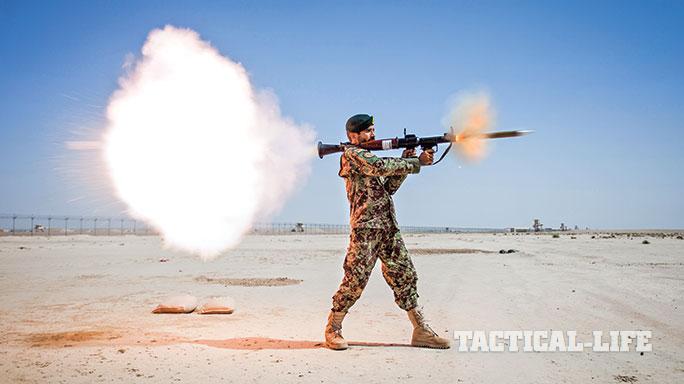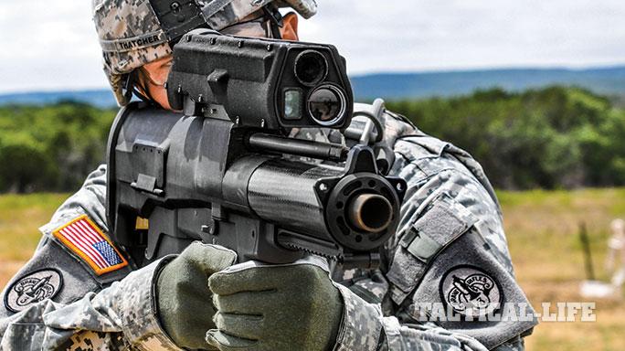 XM25: The newest entrant in the field is the U.S. XM25 Counter-Defilade Target Engagement (CDTE) System. Derived from the now defunct XM29 Objective Individual Combat Weapon (OICW) that combined a 20mm grenade launcher and 5.56mm assault rifle, the XM25, known as the Individual Semi-automatic Air Burst System and nicknamed the “Punisher,” enters service in 2016. It fires 25mm programmable grenades that can be set to explode in mid-air over or near defiladed targets with a laser rangefinder and an integrated computer. The Punisher uses a four-round box magazine, and its maximum effective range for area targets is 765 yards. For more information, visit atk.com.