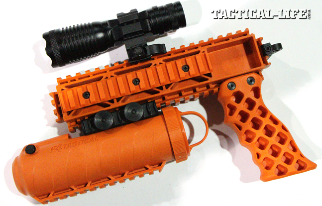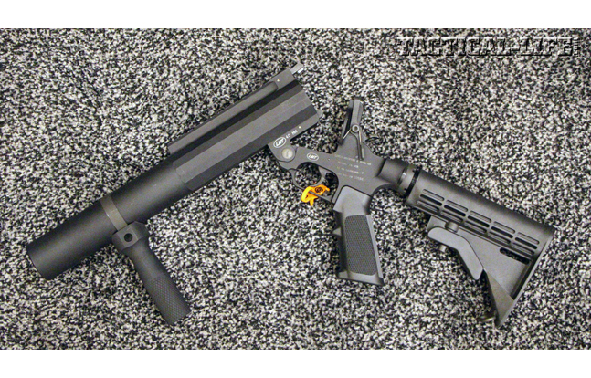 AMTEC Less-Lethal Systems is now selling 37mm and 40mm munition launchers made by Lewis Machine & Tool (LMT). The 40LMTS and 37LMTS are the lightest weight, single-shot launchers on the market. Each comes with a vertical foregrip and a Picatinny rail for mounting an optic.